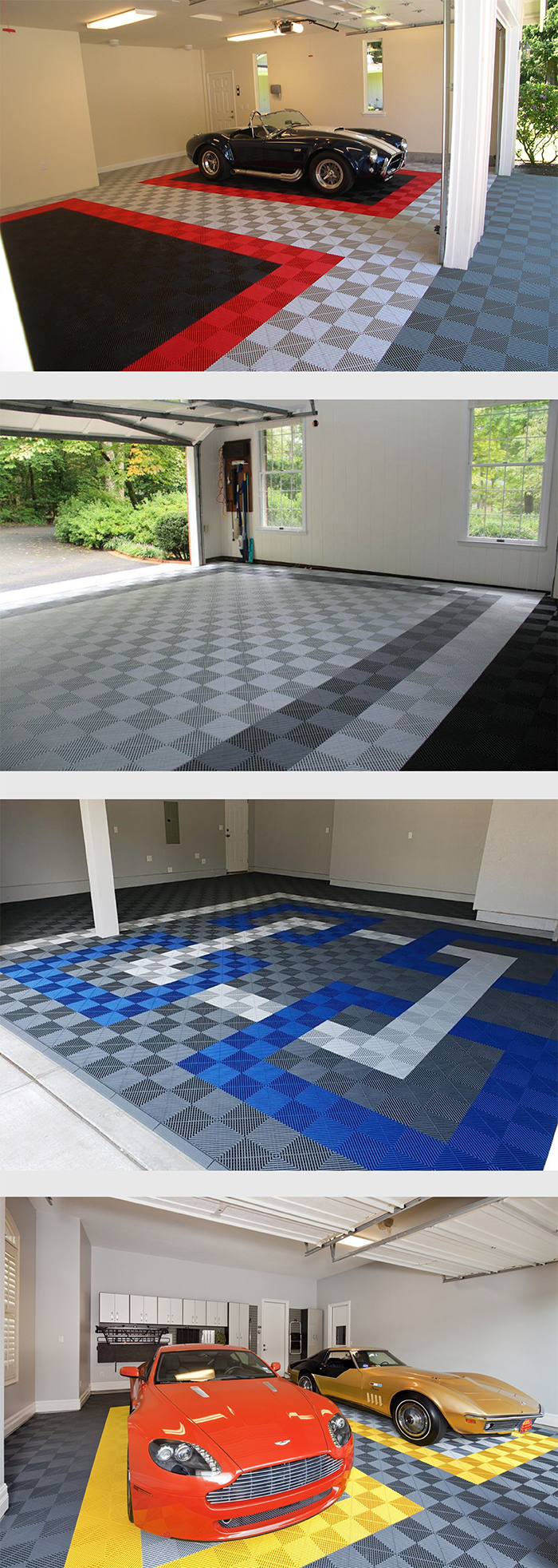 - แผ่นปูพื้นตกแต่งโรงจอดรถ ท่านสามารถออกแบบแผ่นอย่างอิสระ เพื่อตกแต่งพื้นบริเวณโรงจอดรถให้มี สี และ ลวดลาย Pattern ได้ตามที่ต้องการเฉพาะตัว มีสีให้เลือกกว่า 18 เฉดสี และยังสามารถสั่งผลิตเฉดสีได้ ตามผู้ออกแบบต้องการ สร้างสีสันบรรยากาศของห้องเก็บรถในจินตนาการให้เป็นจริง
