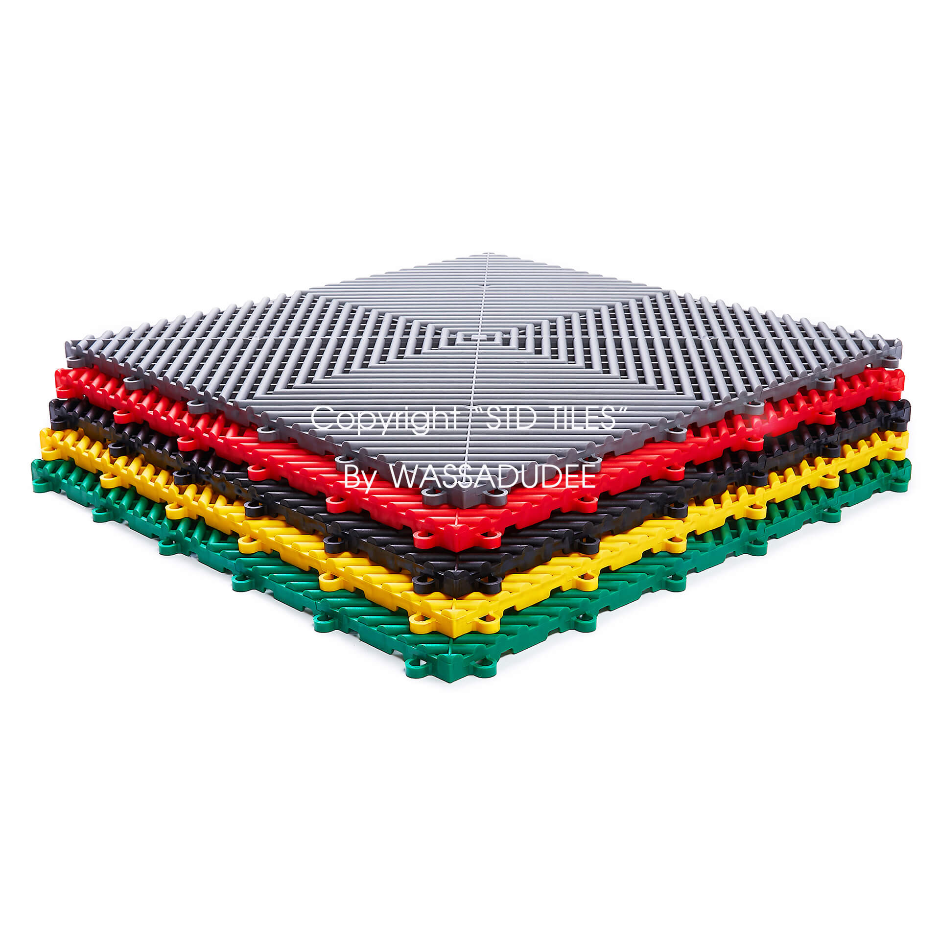 แผ่นปูพื้นโรงจอดรถ GARAGE FLOORS รุ่น SWISS-PP GRID รหัส STD-ANTI SLIP INTERLOCK 5050-FI01 สีแดง RED