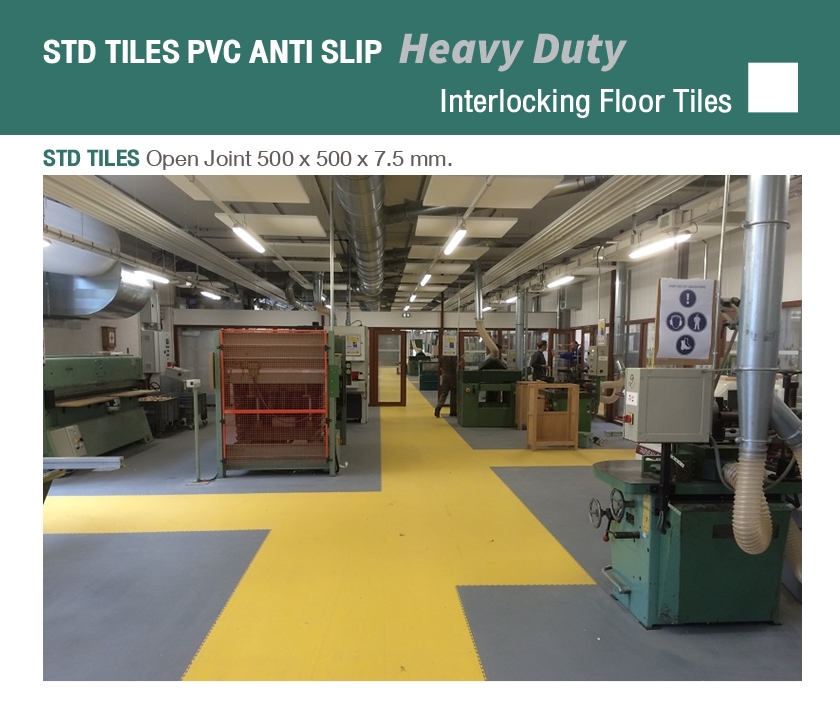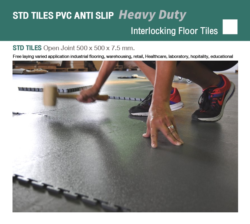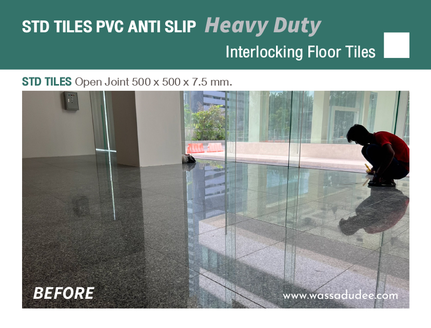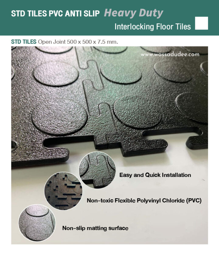 • แผ่นปูพื้นกันลื่นพีวีซี ใช้ปูบนพื้นเพื่อลดความเสี่ยงของการลื่นไถล เพิ่มความปลอดภัยในพื้นที่ใช้งาน ปูเชื่อมต่อแผ่นแนบสนิทด้วยขอบแผ่นเปิดประกบแน่นสนิทชนิด Interlocking