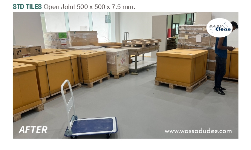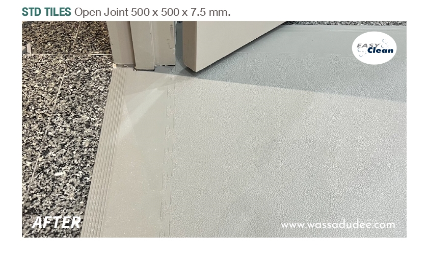• ผิวแผ่นวัสดุปูพื้นออกแบบลายมาตรฐานสวยงาม และเพิ่มการยึดเกาะการเดินกันลื่น