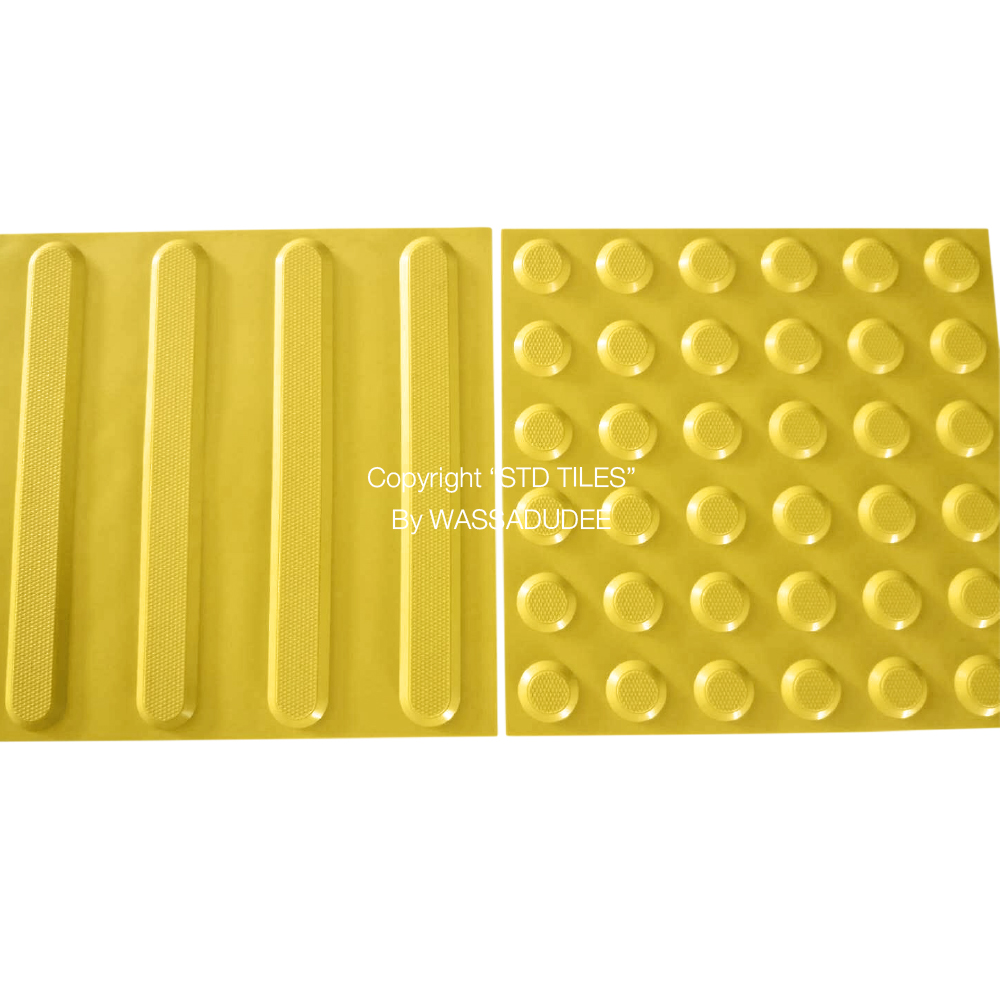 - แผ่นพื้นผิวต่างสัมผัสผลิตจากพีวีซี เป็นวัสดุอยู่ในกลุ่มสิ่งอำนวยความสะดวกขั้นพื้นฐาน
