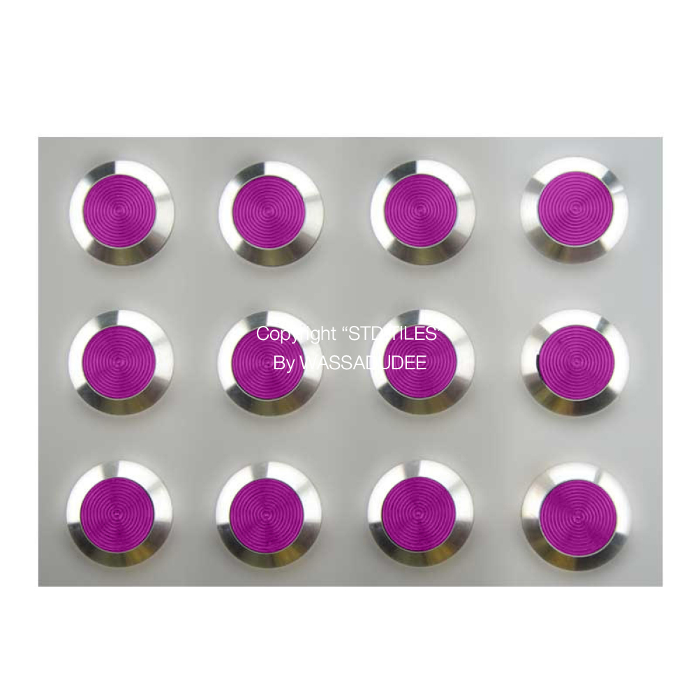 STD TILEs by Wassadudee แผ่นสแตนเลสปูพื้นผิวต่างสัมผัส ผลิตจากสแตนเลส 316 MARINE GRADE วัสดุเป็นเหล็กกล้าไร้สนิม คุณภาพสูง เนื้อแกร่ง ทนทานต่อการกัดกร่อน ได้ในระดับการใช้งานหนัก ใช้งานได้ทั้งภายในและนอกอาคาร ปุ่มนูนพื้นผิวต่างสัมผัสบนแผ่น มีลวดลายวงน้ำบนผิวเพิ่มสัมผัสกันลื่น ทำขึ้นจากโพลีเมอร์สังเคราะห์ HARD POLYURETHANE สีสันสวยงาม ช่วยเพิ่มการยึดเกาะ วัสดุผิวกึ่งเงากึ่งด้าน รูปแบบหลังการติดตั้งบนพื้นสามารถใช้ประโยชน์ ดีไซน์เรียบ แต่แฝงด้วยรายละเอียดอันสวยงาม Warning Tactile STD TILEs by Wassadudee แผ่นสแตนเลสปูพื้นผิวต่างสัมผัสเป็นสัญลักษณ์เตือนมีปุ่มนูนผิวต่างสัมผัสติดบนแผ่นสามารถใช้ประกอบกับรูปแบบแผ่นปูพื้นผิวต่างสัมผัสสัญลักษณ์นำทาง ช่วยเตือนและนำทางบนทางเดินเป็นส่วนหนึ่งของความคิดริเริ่มระดับโลกเพื่อให้ผู้พิการทางสายตาสามารถเข้าถึงสถานที่ได้มากขึ้นและยังช่วยเพิ่มความปลอดภัย Warning Tactile STD TILEs by Wassadudee สามารถกลมกลืนกับวัสดุปิดผิวทุกชนิดได้ง่าย และคงความสวยงามของการตกแต่งพื้นที่ไว้ได้เป็นอย่างดี