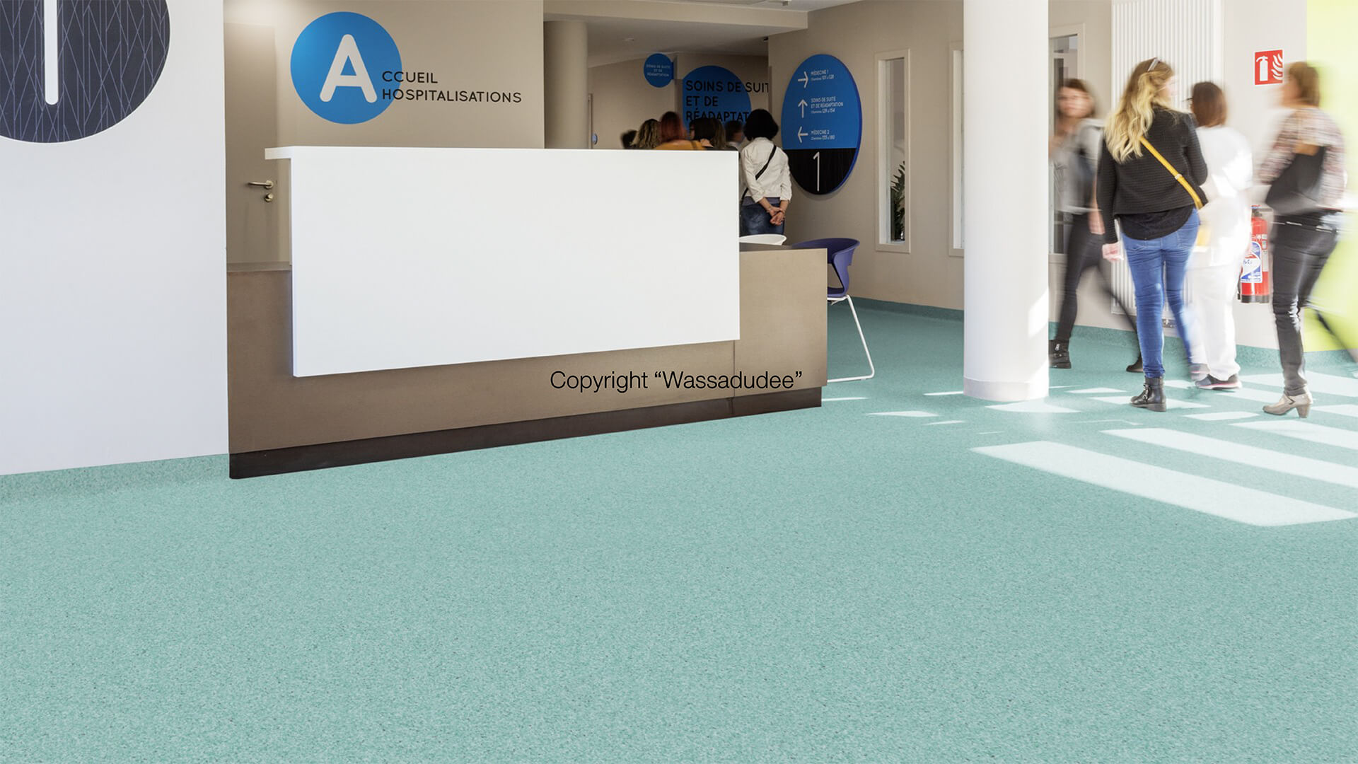 Vinyl Sheet Flooring พื้นไวนิล กระเบื้องยางแบบม้วนลายหิน ผลิตโดยเทคโนโลยีพื้นสะอาด Hygienic Treatment 100% ป้องกันการขยายตัวของแบคทีเรียระยะยาว ผิวกันลื่นปลอดภัย รุ่น MU WS-20630220 Emerald