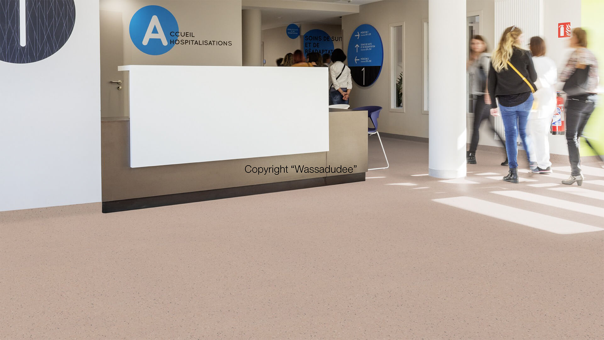 Vinyl Sheet Flooring พื้นไวนิล กระเบื้องยางแบบม้วนลายหิน ผลิตโดยเทคโนโลยีพื้นสะอาด Hygienic Treatment 100% ป้องกันการขยายตัวของแบคทีเรียระยะยาว ผิวกันลื่นปลอดภัย รุ่น MU WS-00560220 Apricot